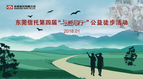 “东莞信托第四届‘与爱同行’公益徒步”将于2018年1月6日举行,现诚邀您与您的家人、朋友一起来参与。本届徒步除了继续为每一位参与者向慈善基金捐赠200元外,为让大家更好地参与到慈善当中,将增设自愿捐款环节,届时所有善款将进入“东莞市慈善会东莞信托慈善基金”专户,捐款情况将于活动结束后由东莞市慈善会向社会公布。