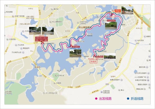 【路线安排】本届徒步路径由于受工程施工影响,故路径作往返设置,往返全程24km,于12km处(桃源公园)折返,路线分为A段8km(设下撤点)、B段16km(设下撤点)、C段24km,请参与者量力而行,选择合适的徒步路段。