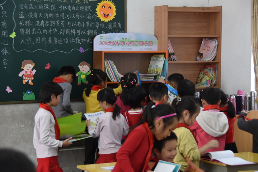 乡村学校部分有图书室(馆),但是开放时间和图书利用率非常低。因为需要专人管理,而乡村学校师资紧缺,老师工作负担重,很难有效管理。且大部分书籍并不适合学生阅读。在每个班级建立图书角,能让课外书和学生亲密接触,管理重心低,人为限制少,学生可以直接阅读,大大增加了可阅读时间。