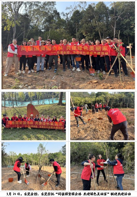 3月21日,东莞信托联合东莞金控在同沙生态公园开展“同植国资国企林 共建绿色美丽家”联建共建活动。党员干部用实际行动践行和传递生态文明理念,增强了为东莞生态植绿、守绿、护绿的责任感和使命感,为绿美东莞生态建设贡献国企力量。